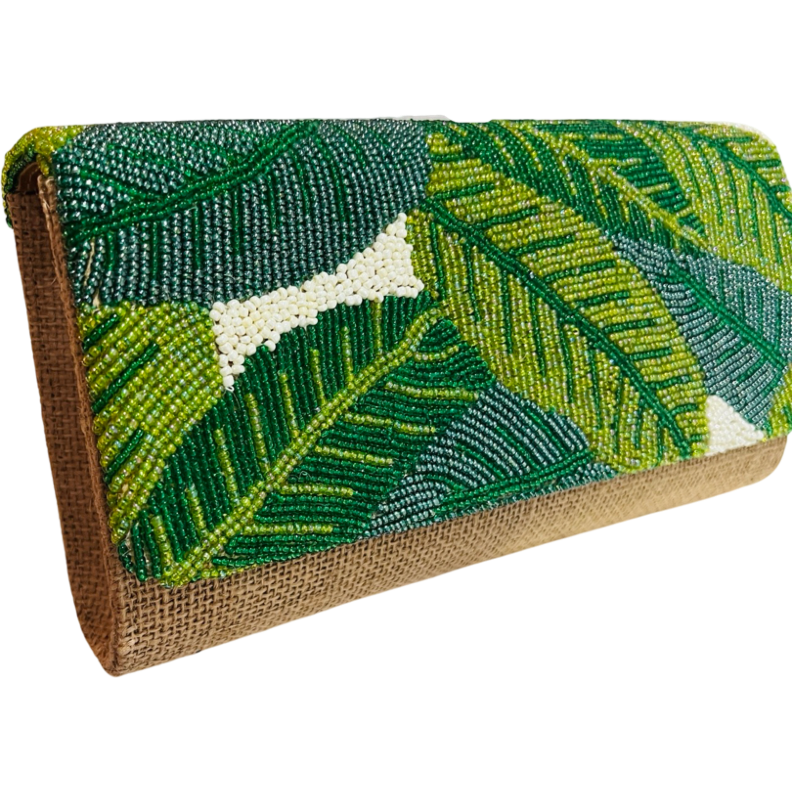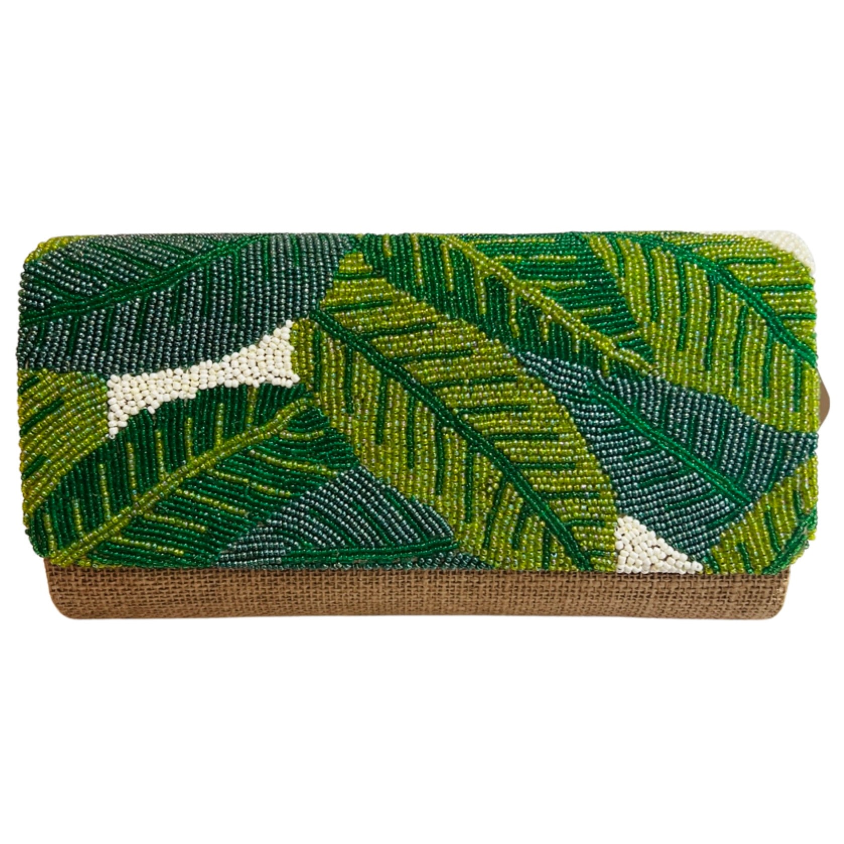 Banana Leaf Beaded Wicker Clutch